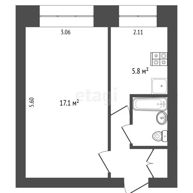 - Общая площадь28.4 м²