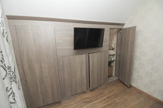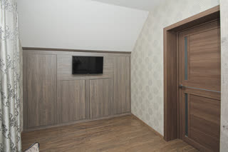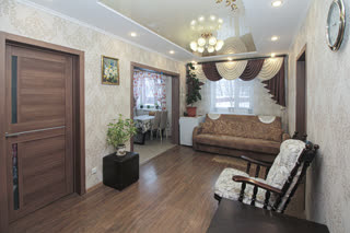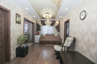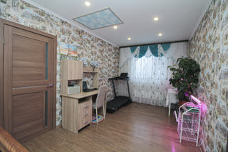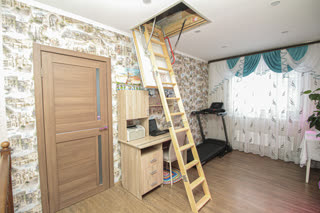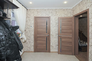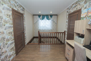 На 1 этаже кухня гостиная, спальня, санузел., на втором две спальни и одна проходная комната. Остальная информация при осмотре.