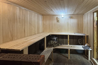 На территории участка есть хорошая баня, капитальный гараж для автомобиля, небольшой хозяйственный блок.